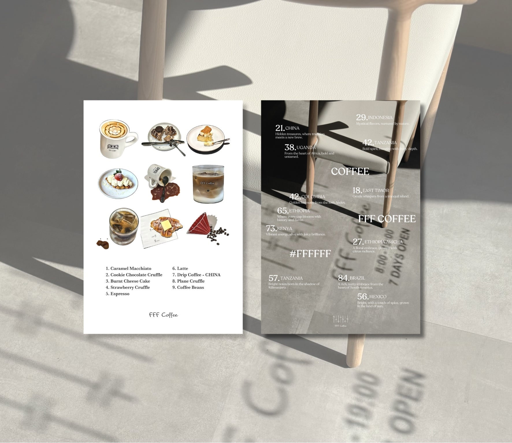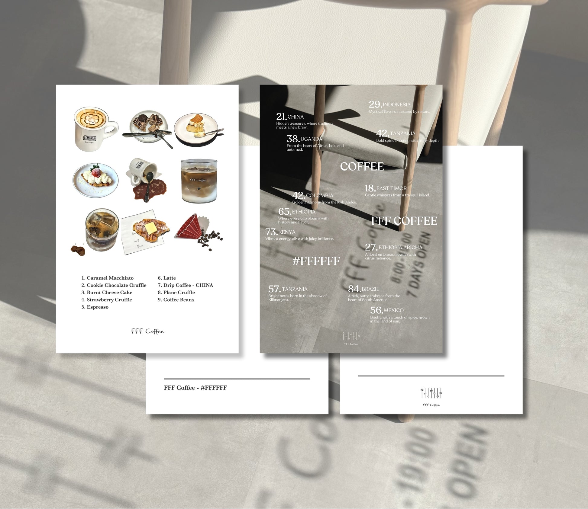 one designed from an in-store photo, and another featuring illustrations inspired by our café menu.